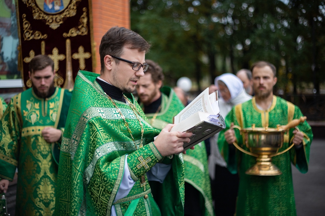 В завершении Богослужения, по случаю престольного праздника, состоялся крестный ход вокруг храма и славление преподобному Сергию Радонежскому.